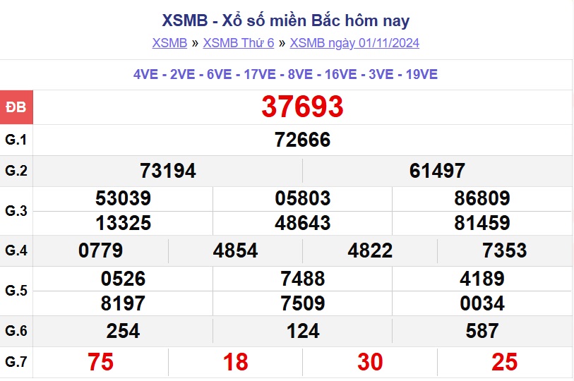 XSMB 1/11, kết quả xổ số miền Bắc hôm nay 1/11/2024.