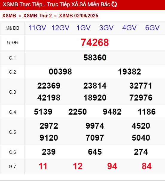 XSMB 2/6/2025. Xem lại KQXSMB ngày 2/6/2025