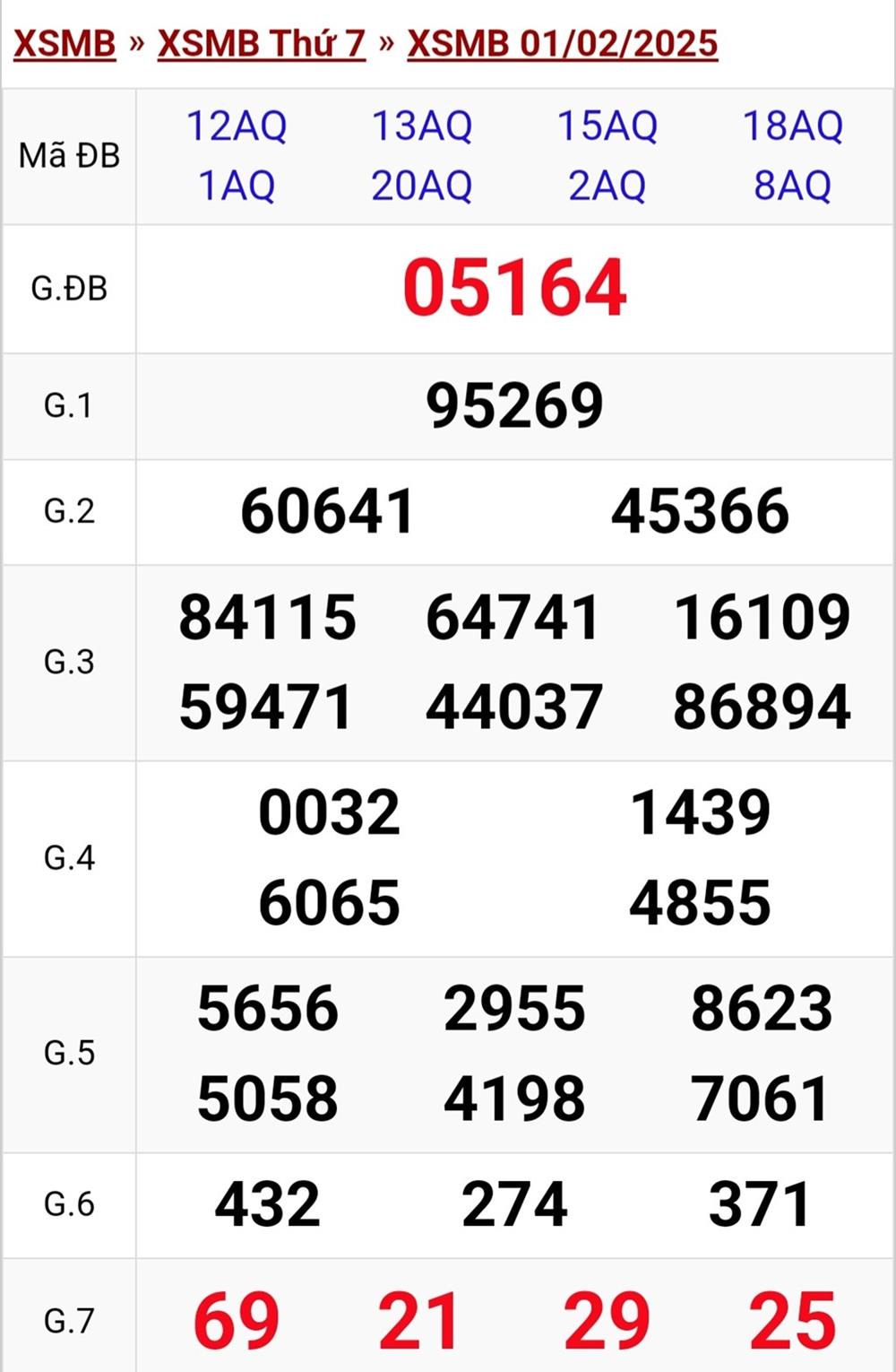 XSMB 31/1/2025