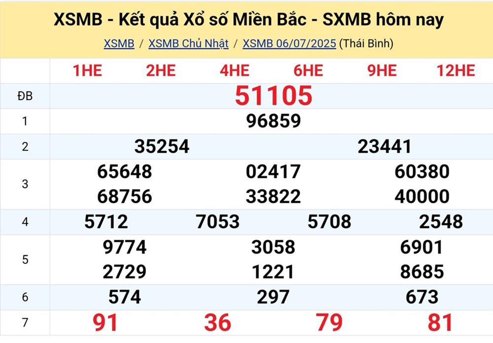 - XSMB 6/7/2025. Xem lại KQXSMB ngày 6/7/2025