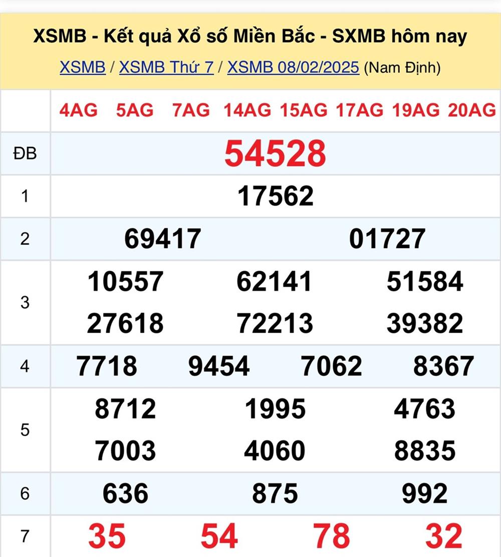 XSMB 8/2, kết quả xổ số miền Bắc ngày 8/2/2025.