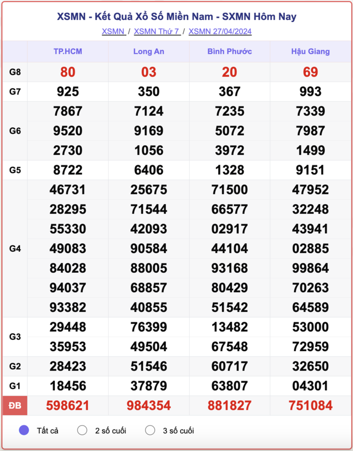 - Kết quả XSMN ngày 27/4/2024