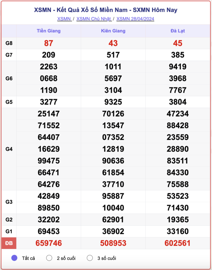 - Kết quả XSMN ngày 28/4/2024