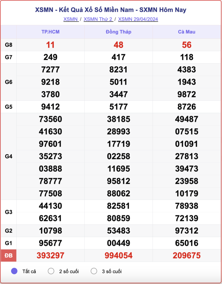 - Kết quả XSMN ngày 29/4/2024