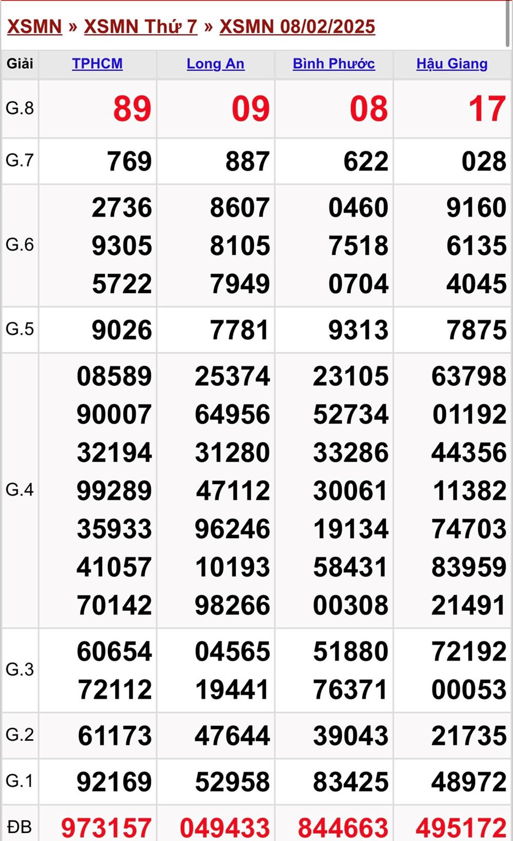 XSMN 8/2, kết quả xổ số miền Nam ngày 8/2/2025.