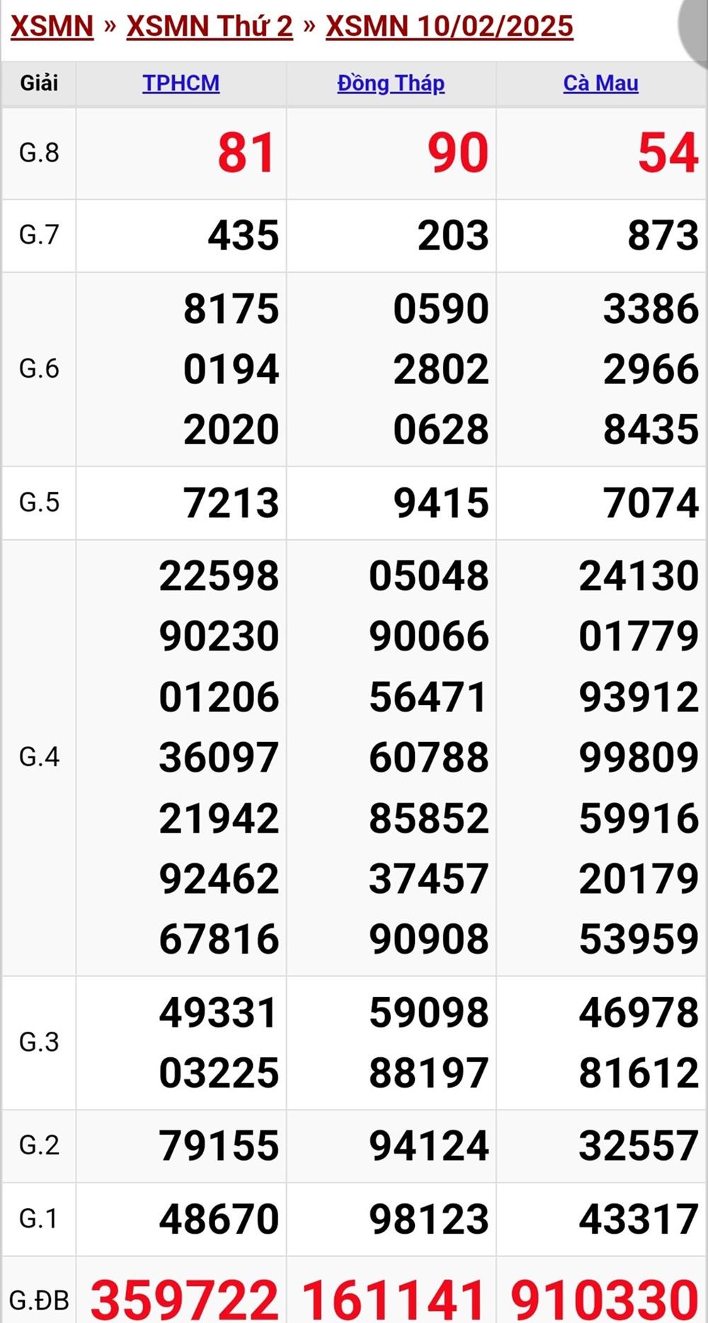 XSMN 8/2, kết quả xổ số miền Nam ngày 8/2/2025.