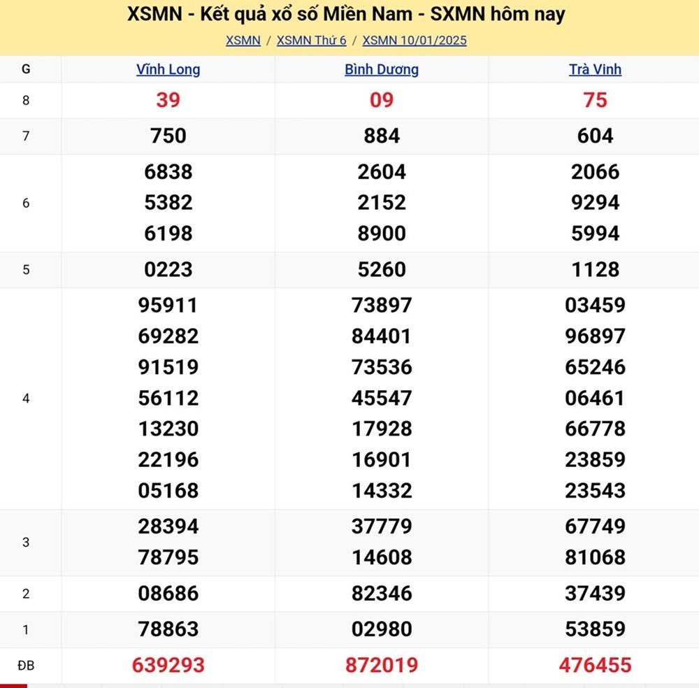 - Thứ 6 hàng tuần xổ số miền Nam được quay thưởng tại Trà Vinh, Bình Dương, Vĩnh Long.