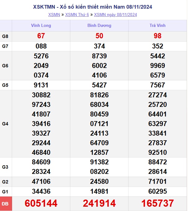 - Thứ 6 hàng tuần xổ số miền Nam được quay thưởng tại Trà Vinh, Bình Dương, Vĩnh Long.