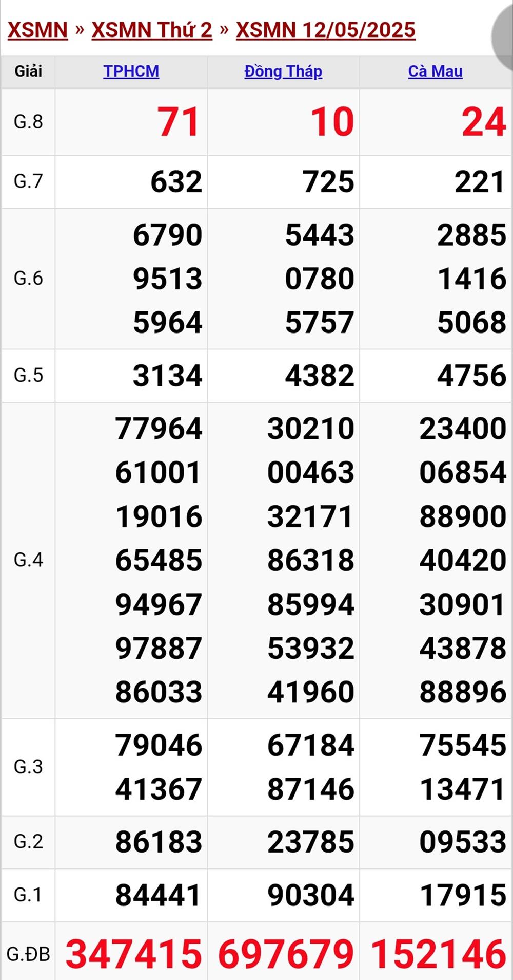 XSMN 12/5/2025. Xem lại KQXSMN ngày 12/5/2025