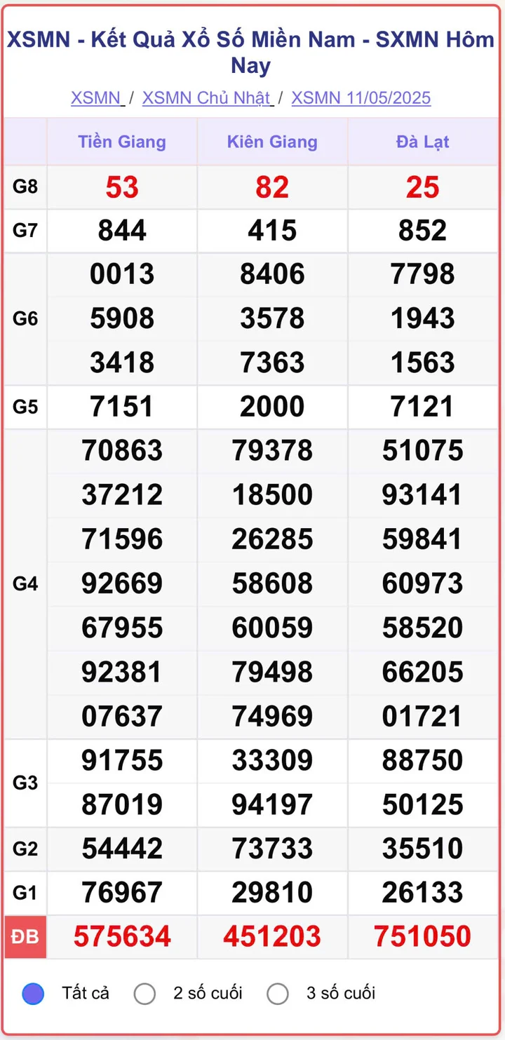 XSMN 11/5/2025. Xem lại KQXSMN ngày 11/5/2025