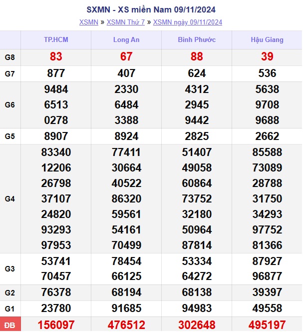 - Thứ 7 hàng tuần xsmn quay thưởng tại Hậu Giang, TP.HCM, Long An, Bình Phước.