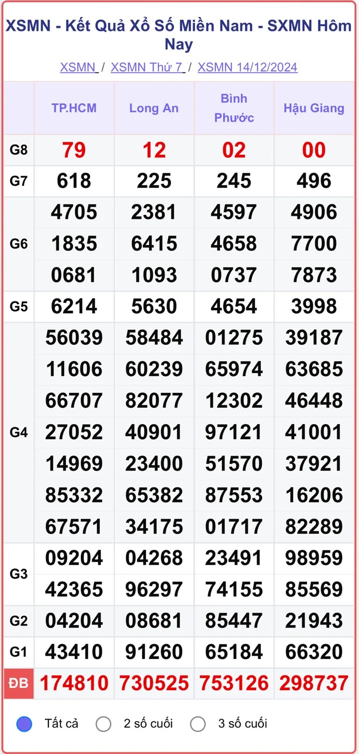 XSMN 14/12/2024