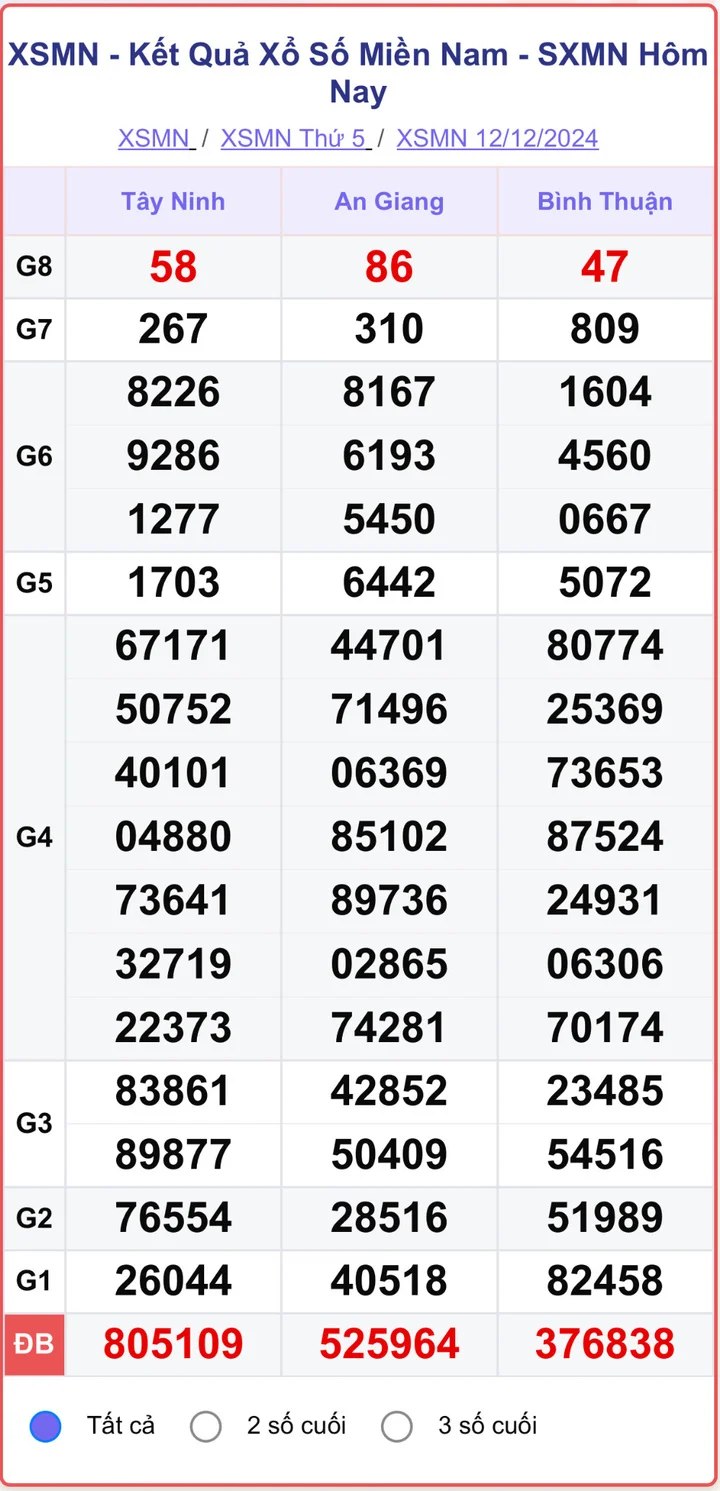 XSMN 12/12/2024