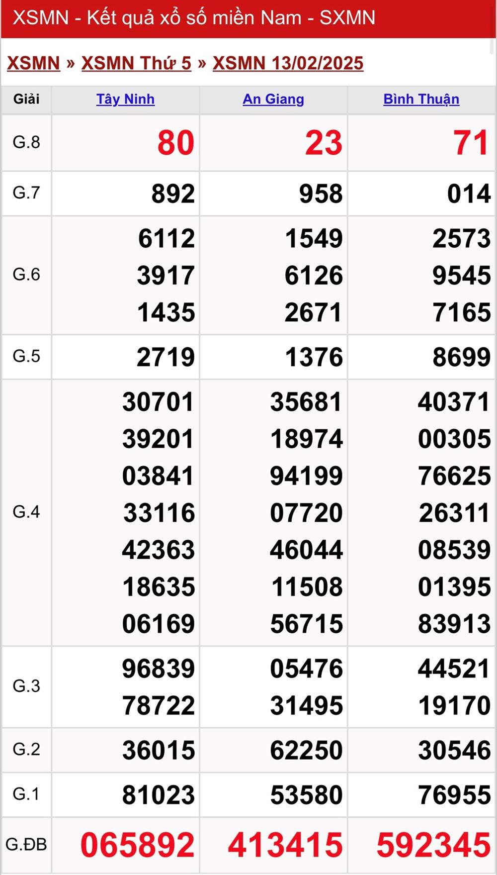 - Thứ 5 hàng tuần xổ số miền Nam được quay thưởng tại An Giang, Bình Thuận, Tây Ninh.