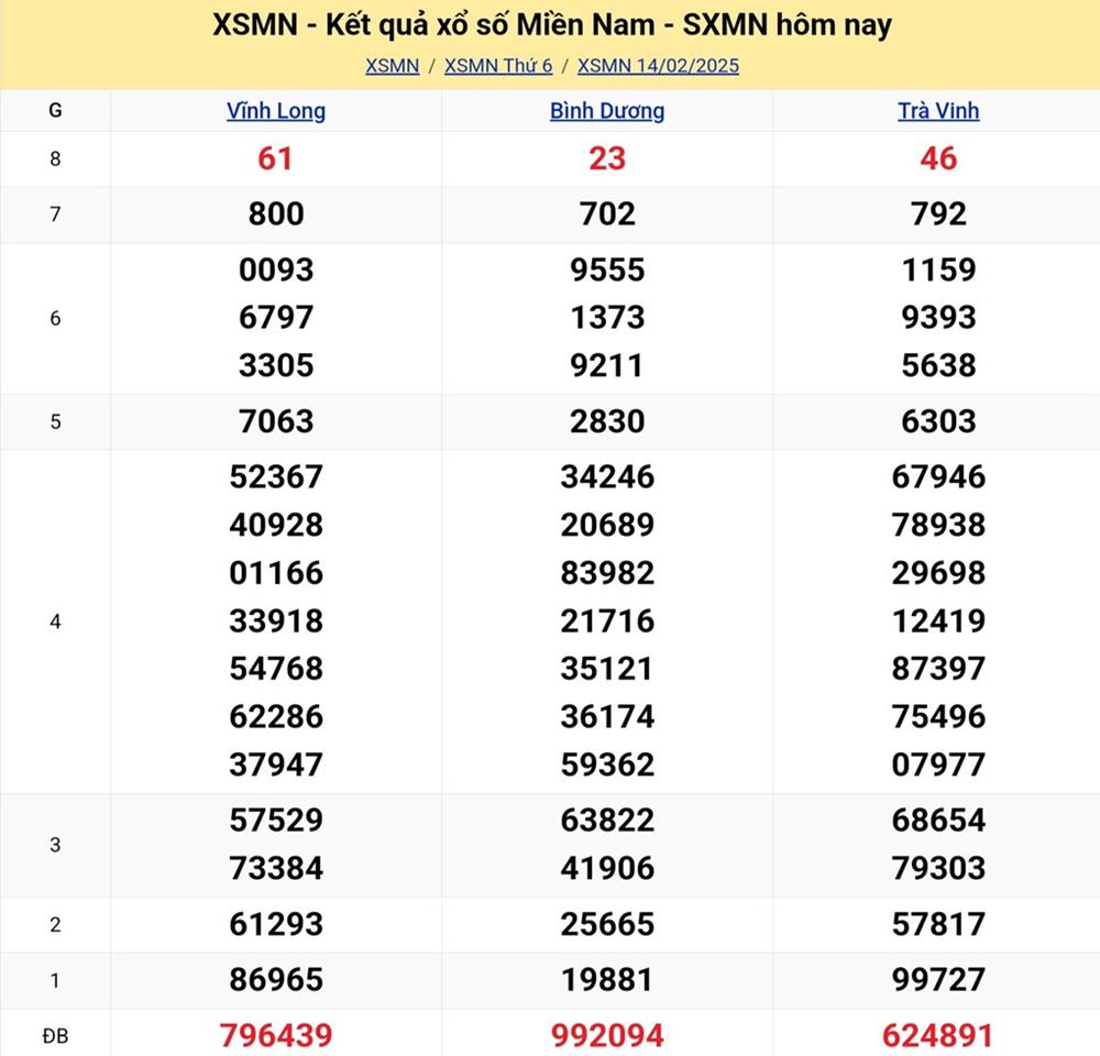 - Thứ 6 hàng tuần xổ số miền Nam được quay thưởng tại Trà Vinh, Bình Dương, Vĩnh Long.