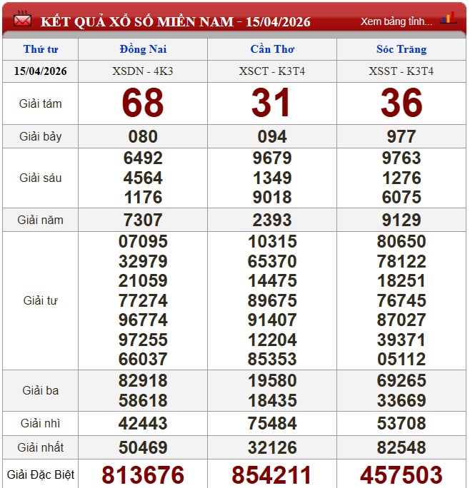 Kết quả xổ số miền Nam (XSMN) ngày 15/4