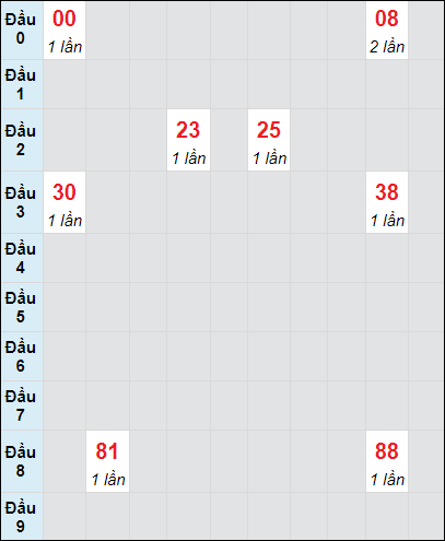 Mời các bạn theo dõi lại bảng kết quả kỳ trước để có cái nhìn bao quát hơn về vị trí các con số đã xuất hiện.