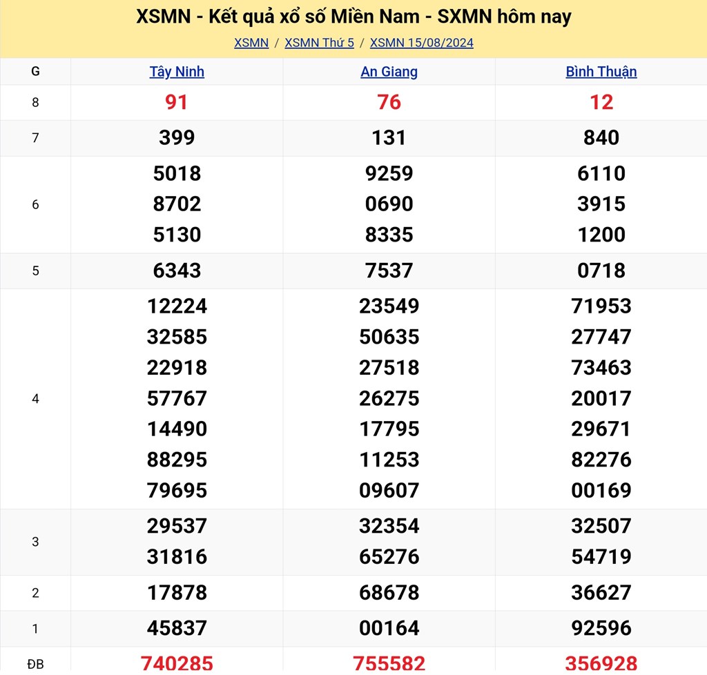 Kết quả xổ số miền Nam ngày 15/8 - KQXSMN 15/8/2024 - XSMN 15/8.