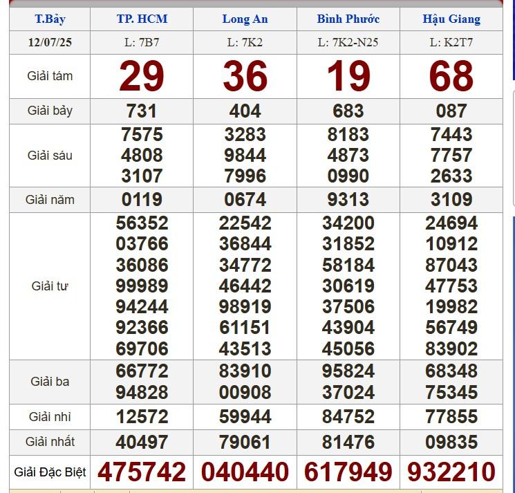 XSMN 12/7/2025. Xem lại KQXSMN ngày 12/7/2025