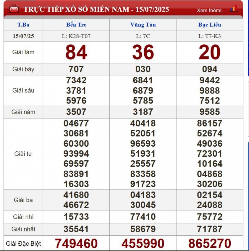 XSMN 15/7/2025. Xem lại KQXSMN ngày 15/7/2025