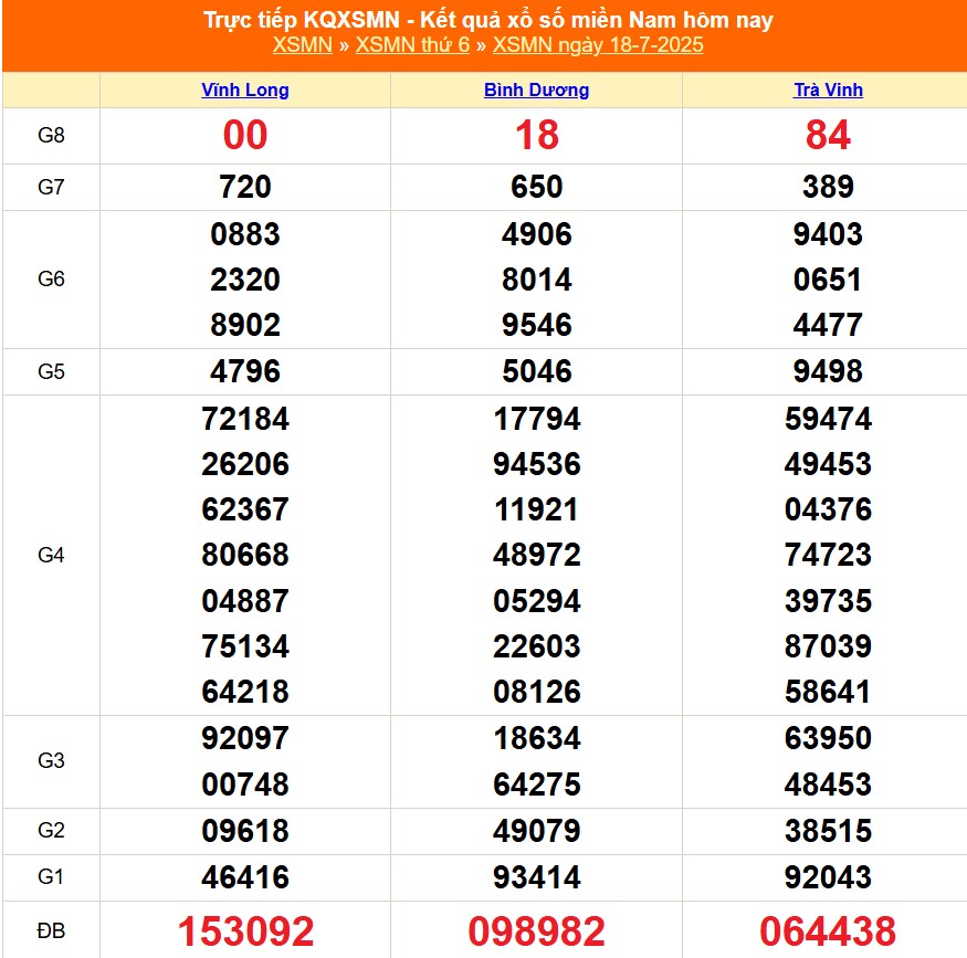 XSMN 18/7/2025. Xem lại KQXSMN ngày 18/7/2025