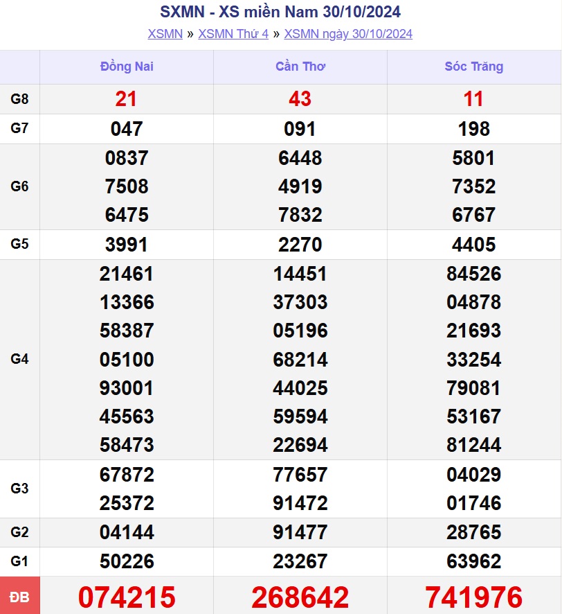 XSMN 30/10, kết quả xổ số miền Nam hôm nay 30/10/2024.