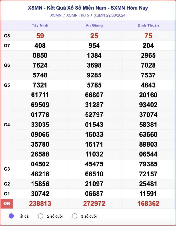 XSMN 29/8, kết quả xổ số miền Nam hôm nay 29/8/2024.