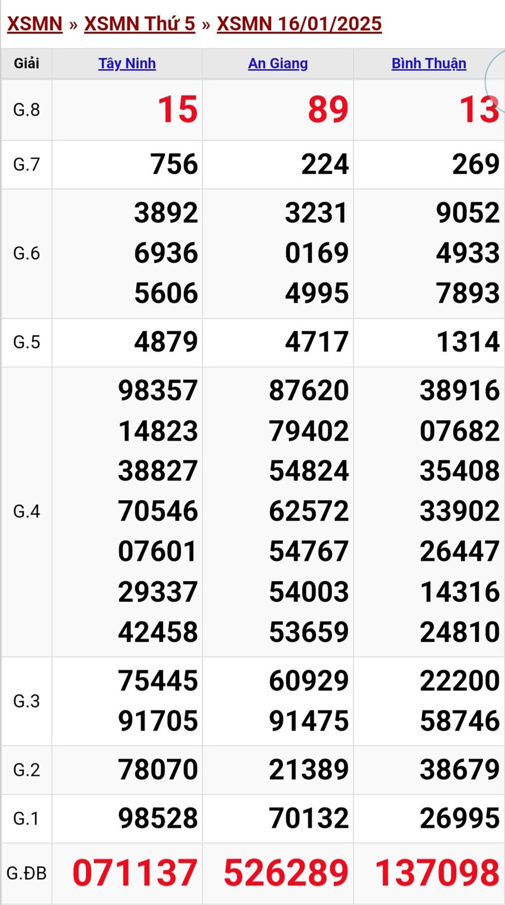 - Thứ 5 hàng tuần xổ số miền Nam được quay thưởng tại An Giang, Bình Thuận, Tây Ninh.