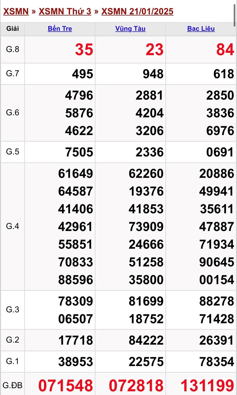 - Thứ 3 hàng tuần xổ số miền Nam được quay thưởng tại Bạc Liêu, Bến Tre, Vũng Tàu.