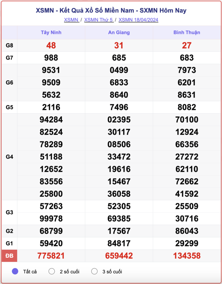 XSMN thứ 5, kết quả xổ số miền Nam ngày 18/4/2024