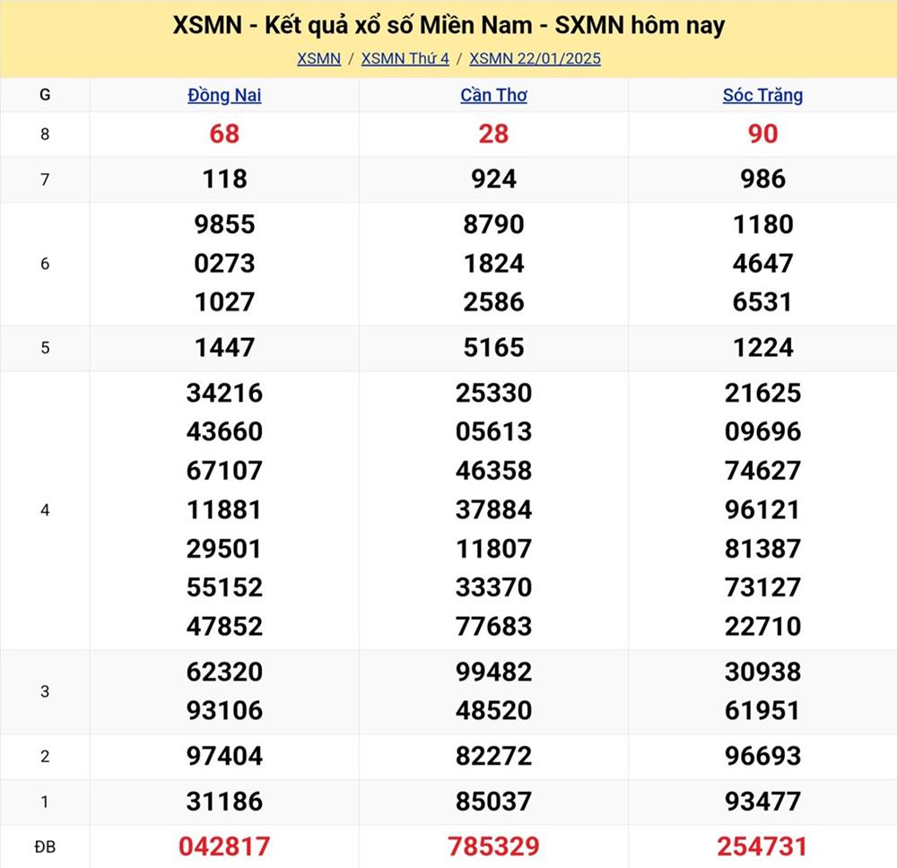 - Thứ 4 hàng tuần xổ số miền Nam được quay thưởng tại Đồng Nai, Cần Thơ, Sóc Trăng.