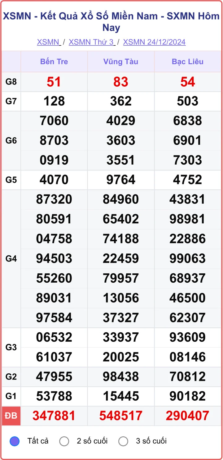 XSMN 24/12, kết quả xổ số miền Nam hôm nay 24/12/2024.