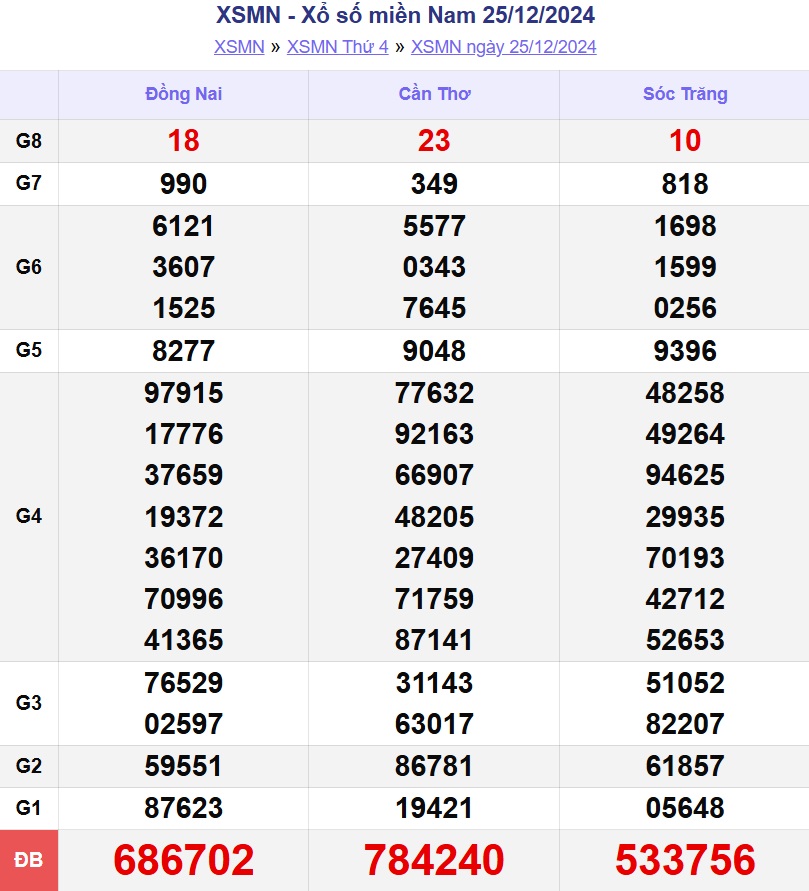 XSMN 25/12, kết quả xổ số miền Nam hôm nay 25/12/2024.