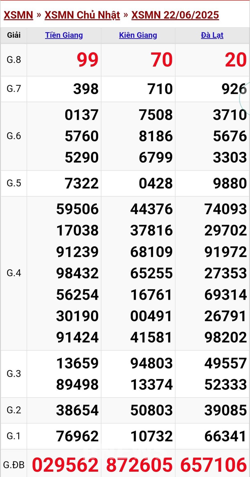 - XSMN 22/6/2025. Xem lại KQXSMN ngày 22/6/2025