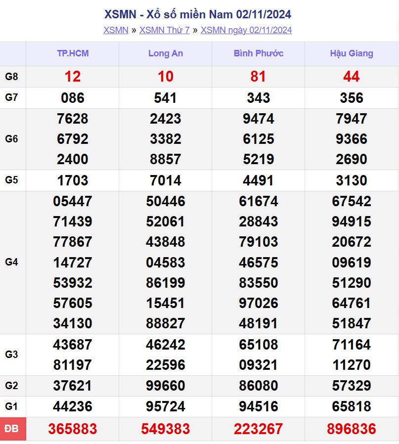 - Thứ 7 hàng tuần xsmn quay thưởng tại Hậu Giang, TP.HCM, Long An, Bình Phước.