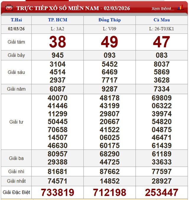 Kết quả xổ số miền Nam ngày 2/3/2026
