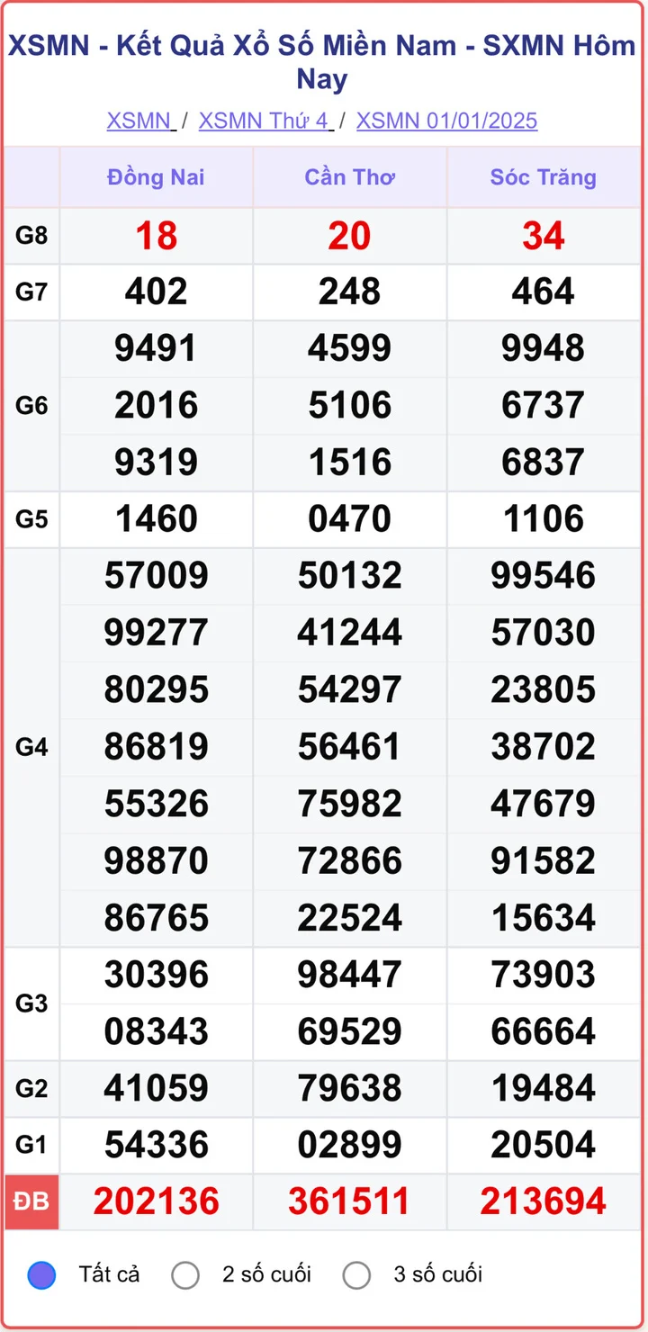XSMN 1/1/2025