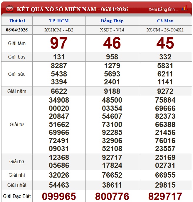 Kết quả xổ số miền Nam (XSMN) hôm nay ngày 6/4