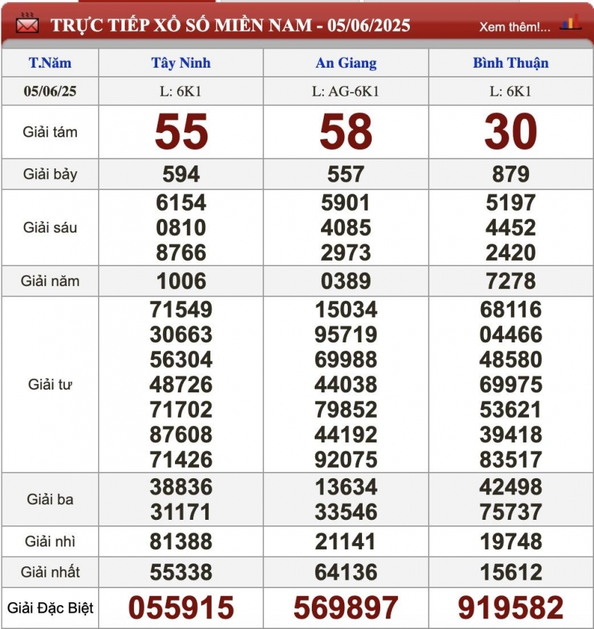 Kết quả xổ số miền Nam (XSMN) ngày 6/6
