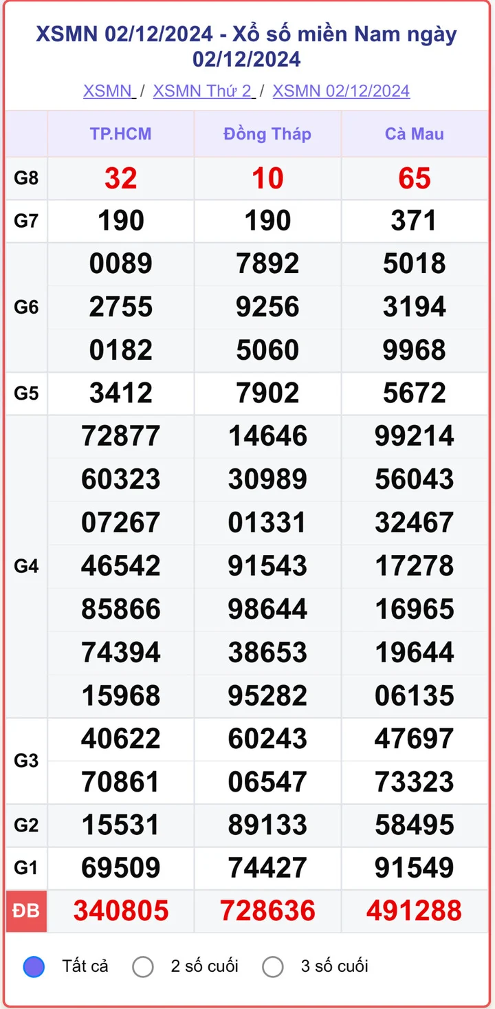 XSMN 2/12, kết quả xổ số miền Nam hôm nay 2/12/2024.