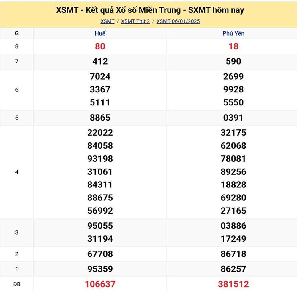 - Xổ số miền Trung thứ hai được mở thưởng tại Phú Yên, Thừa Thiên Huế.