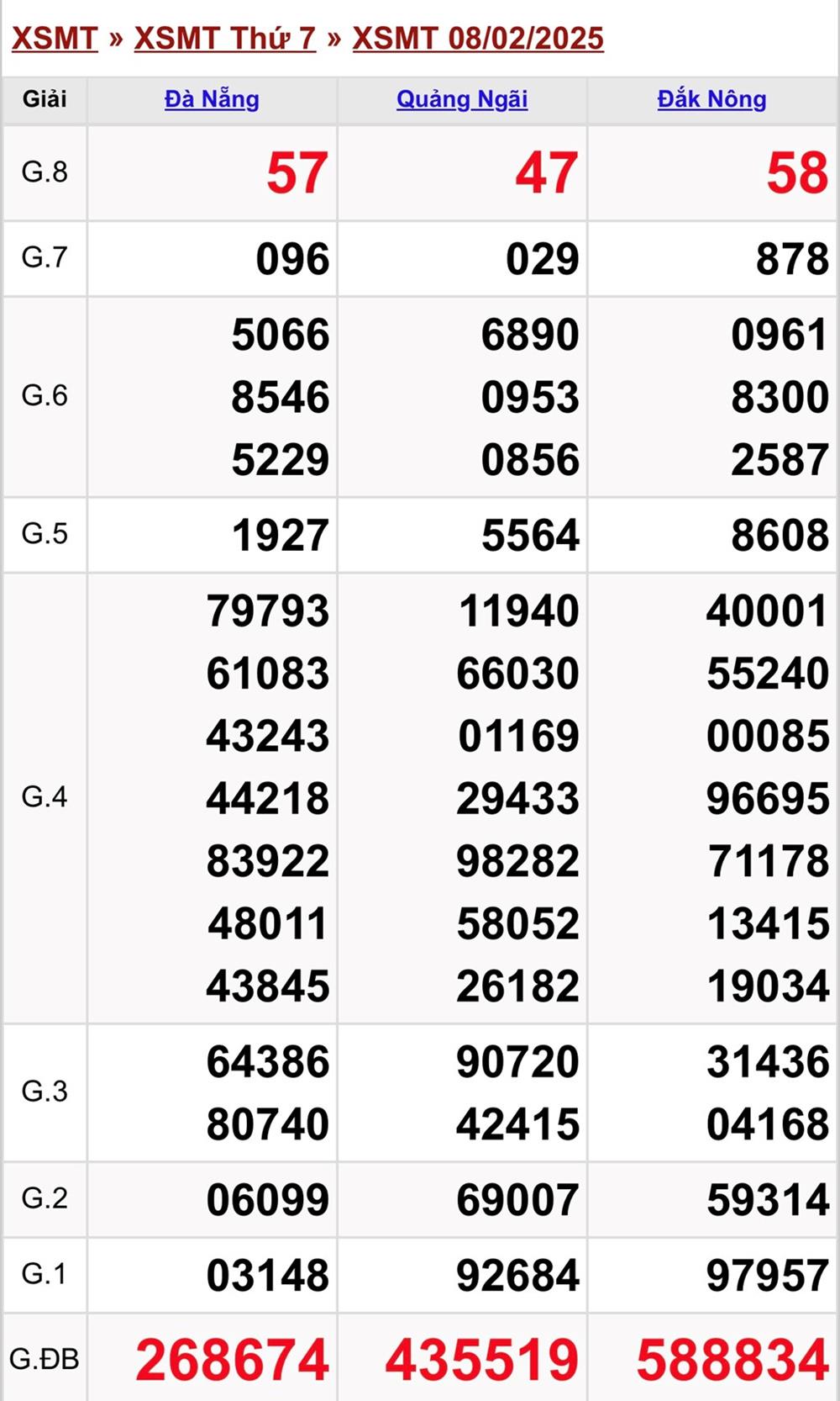 XSMT 8/2, kết quả xổ số miền Trung ngày 8/2/2025.