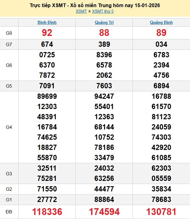 Kết quả xổ số miền Trung (XSMT) hôm nay ngày 15/1