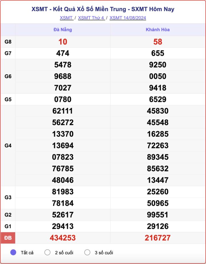 - XSMT 14/8/2024