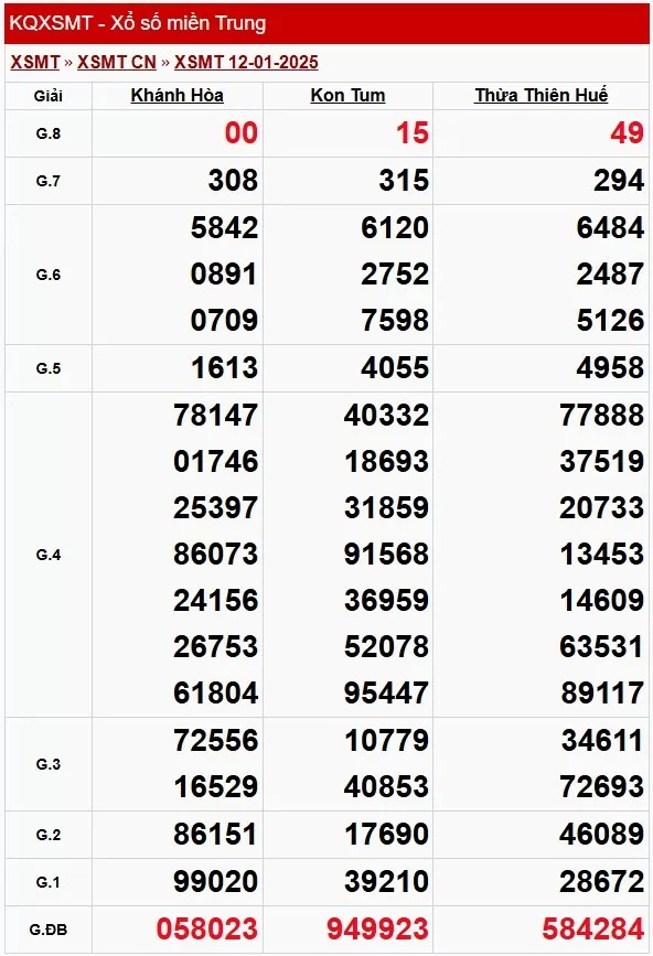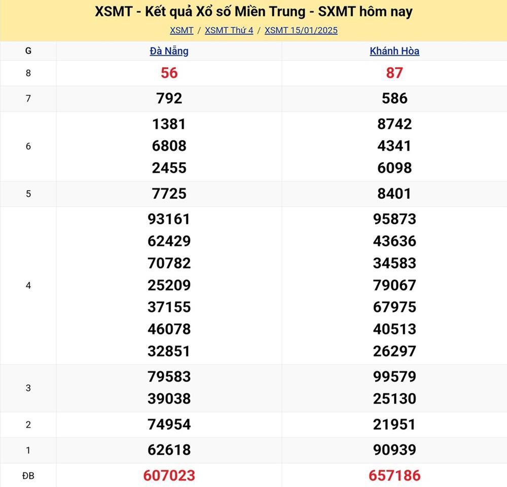Kết quả xổ số miền Trung (XSMT) được thực hiện lúc 16 giờ 30 phút và được mở thưởng bởi Công ty xổ số kiến thiết của Gia Lai (XSGL) và Ninh THuận (XSNT). Kết quả của đài nào sẽ được mở thưởng tại trường quay của tỉnh đó. Xổ số hôm nay - KQXSMT ngày 17/1 được quay thưởng bắt đầu từ giải tám cho đến giải nhất, cuối cùng là công bố kết quả giải đặc biệt.