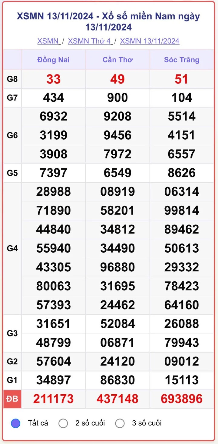 XSMN 13/11