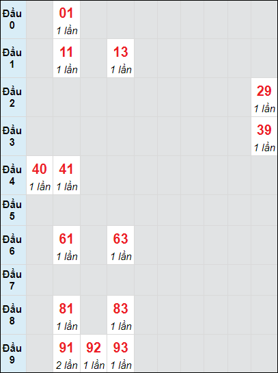 Mời các bạn theo dõi lại bảng kết quả kỳ trước để có cái nhìn bao quát hơn về vị trí các con số đã xuất hiện