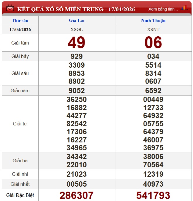 Kết quả xổ số miền Trung (XSMT) ngày 17/4