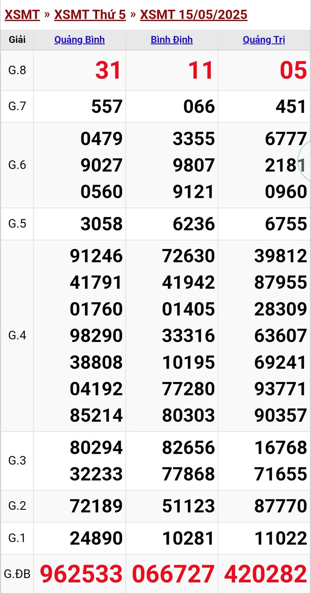 XSMT 15/5, kết quả xổ số miền Trung (KQXSMT) ngày 15/5/2025.