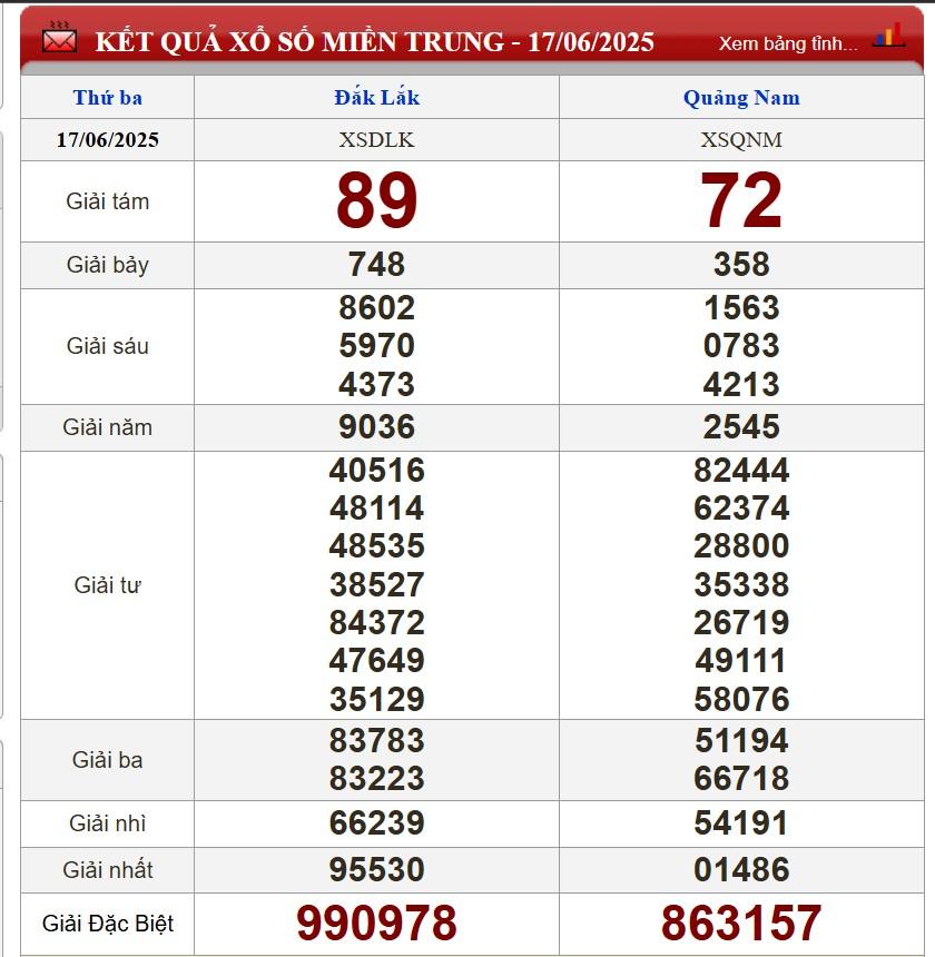 - Xổ số miền Trung thứ ba được mở thưởng tại Quảng Nam, Đắk Lắk.
